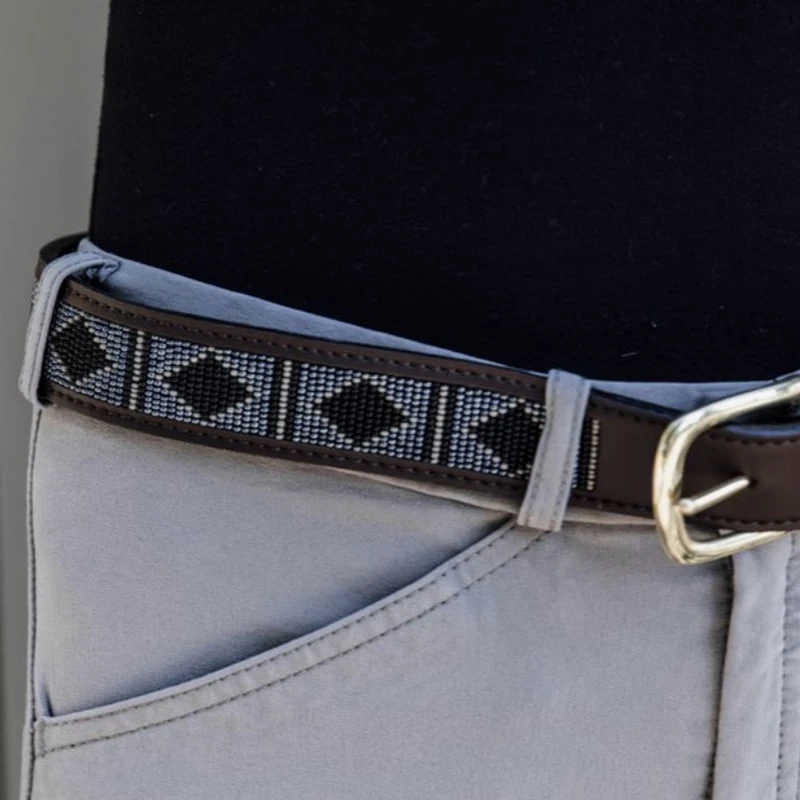 The belt cannot be washed in the washing machine. To prevent damage to the pearls, it is best to clean them with a damp cloth. The artificial leather can be cleaned with the Kentucky Horsewear tack cleaner.
