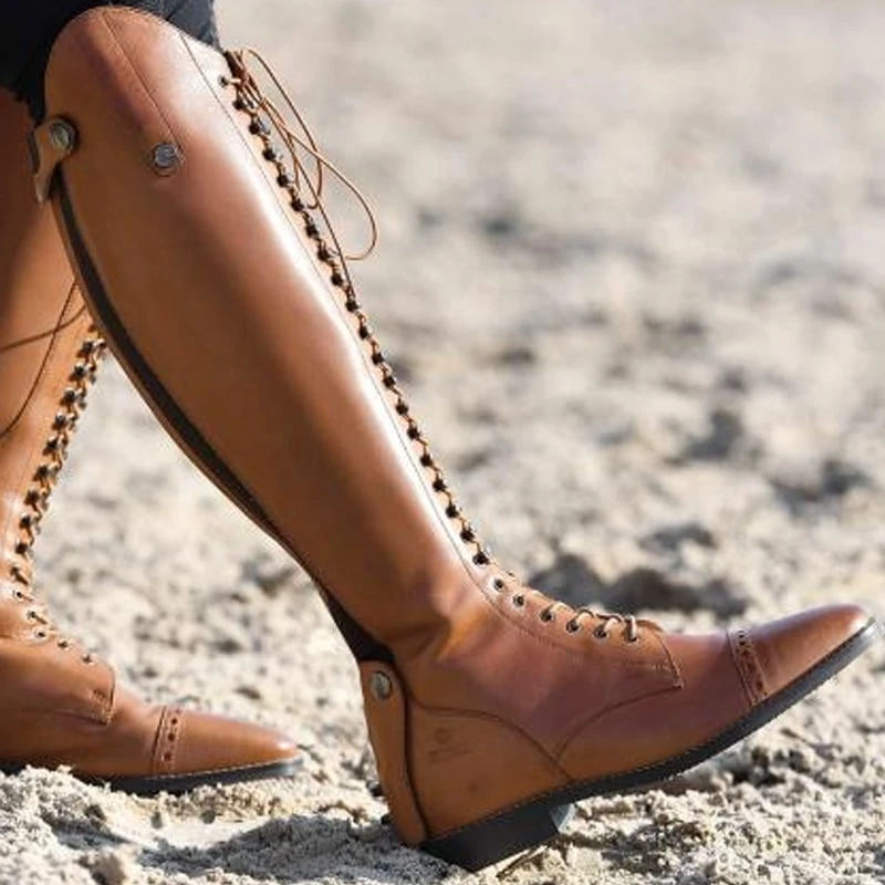 The Busse Laval model is a riding boot that is characterized by the high lacing at the front. The riding boots Busse Laval are made of very beautiful Brazilian cow leather. The high lace at the front can be replaced for a different color (sold separately) and with this lace the width of the calf can be adjusted. At the bottom of the zipper at the back, there is a YKK zipper protector that protects the zipper against dirt and moisture. An elastic insert runs along the zipper that ensures a comfortable and optimal fit. These Busse Laval riding boots have a dressage bow of 7 cm high.