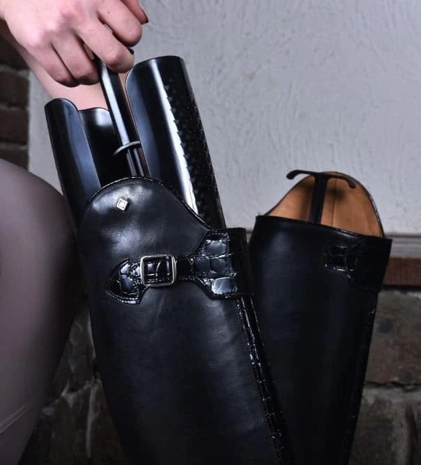 To make sure that the leather of your De Niro ridingboots stays in the right shape we advise to keep boot tensioners in your riding boots. The tensioners prevent your boots from folding. Before you use tensioners in your riding boots, please make sure that your boots are dry. Humidity in your boots can cause mould to form, because the leather can not discard the moist when the tensioners are in place.