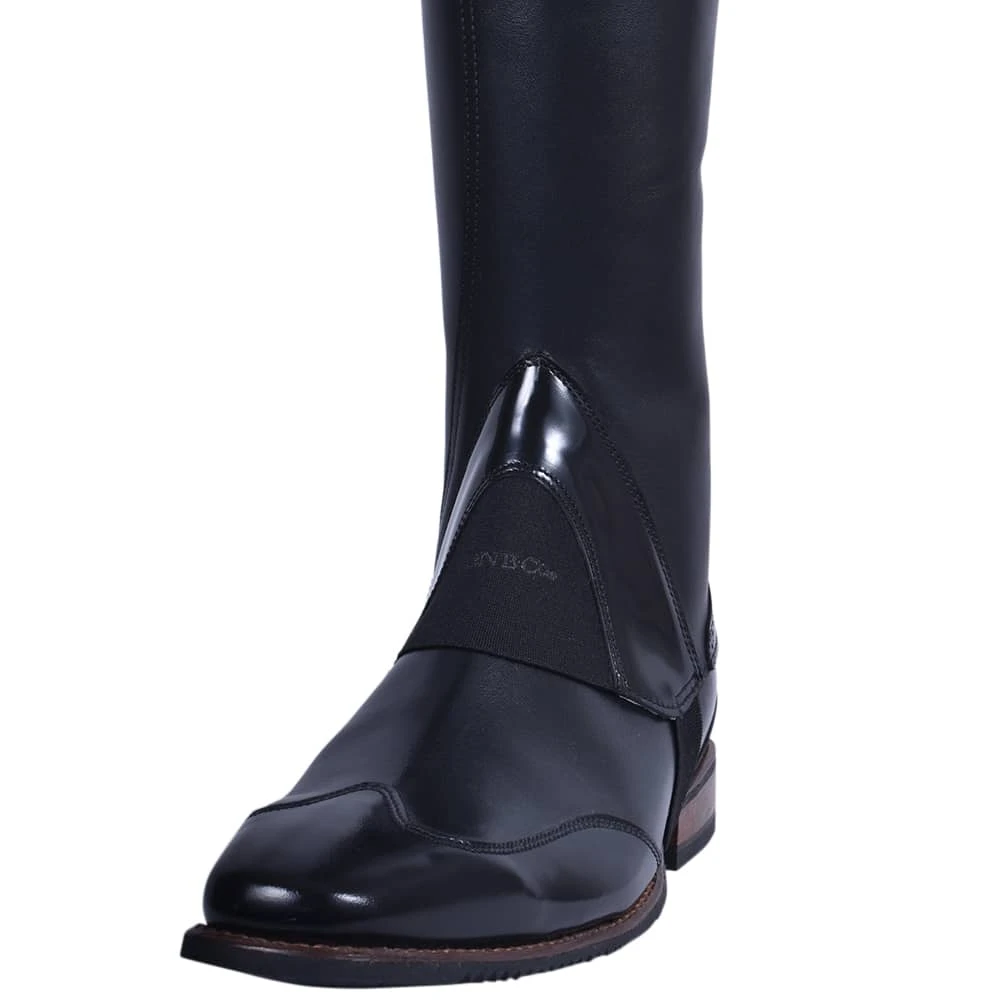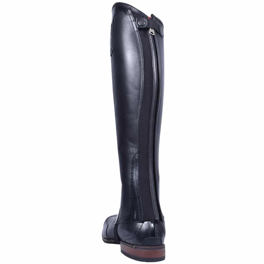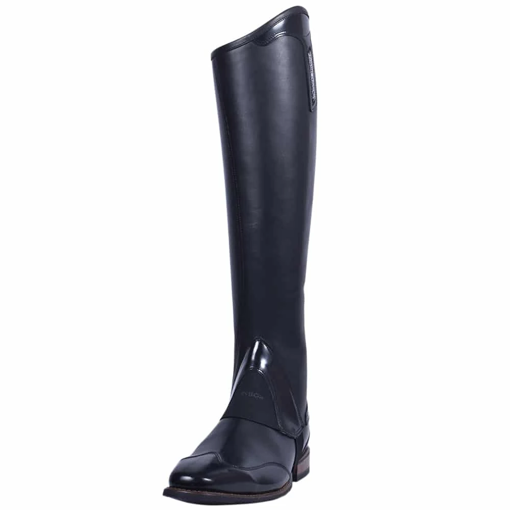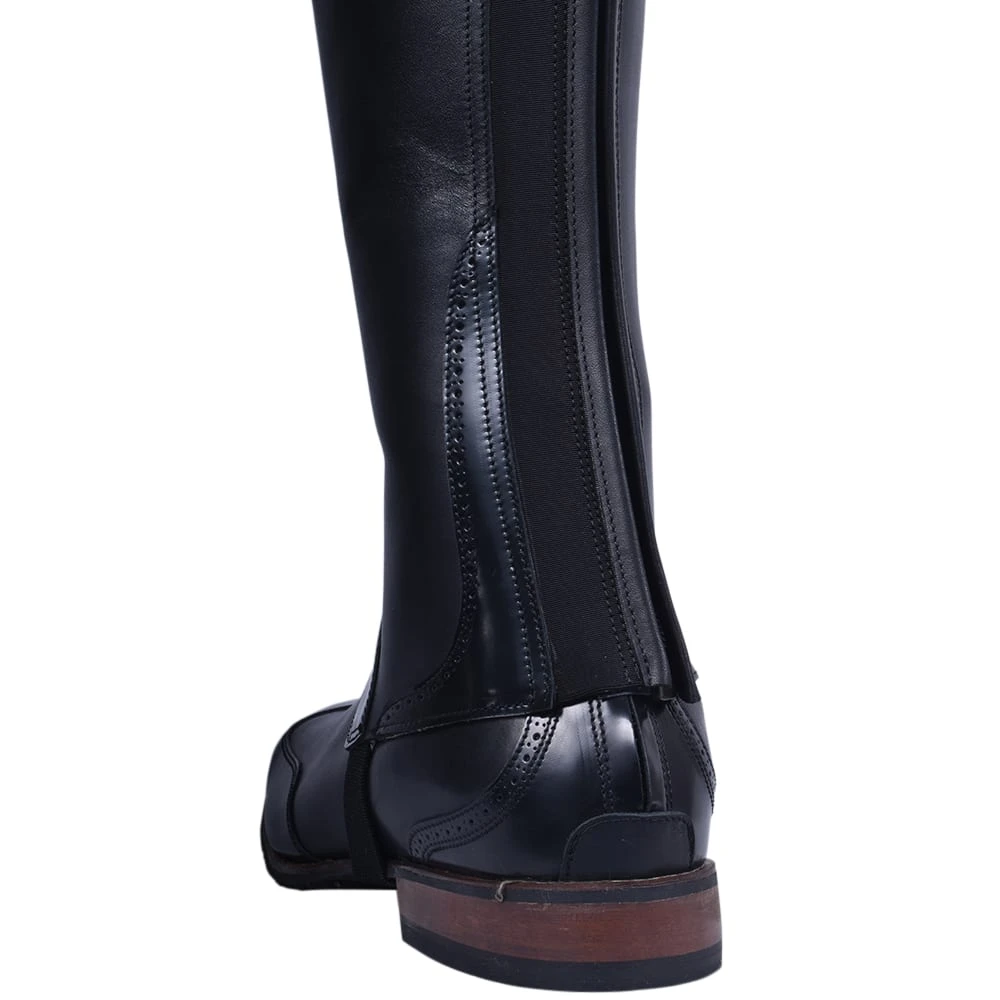 This Italia G-ITA De Niro gaiter is made in smooth black leather. This model has a zipper in the back, protected by a top and bottom zipper protector. This classic looking gaiter is equiped with a standard hunter top. The G-ITA gaiter is made of WRAT calf leather of the finest quality. The use of this leather ensure optimal comfort and a perfect fit. The inner lining of the leather is also made entirely out of calf leather, for an extra nice feel on the riders leg. Overall, this gaiter has a very elegant and modern look. Combine these gaiters with the DeNiro T-ITA Strip Signature or the DeNiro T-ITA Signature Campioni short boots!