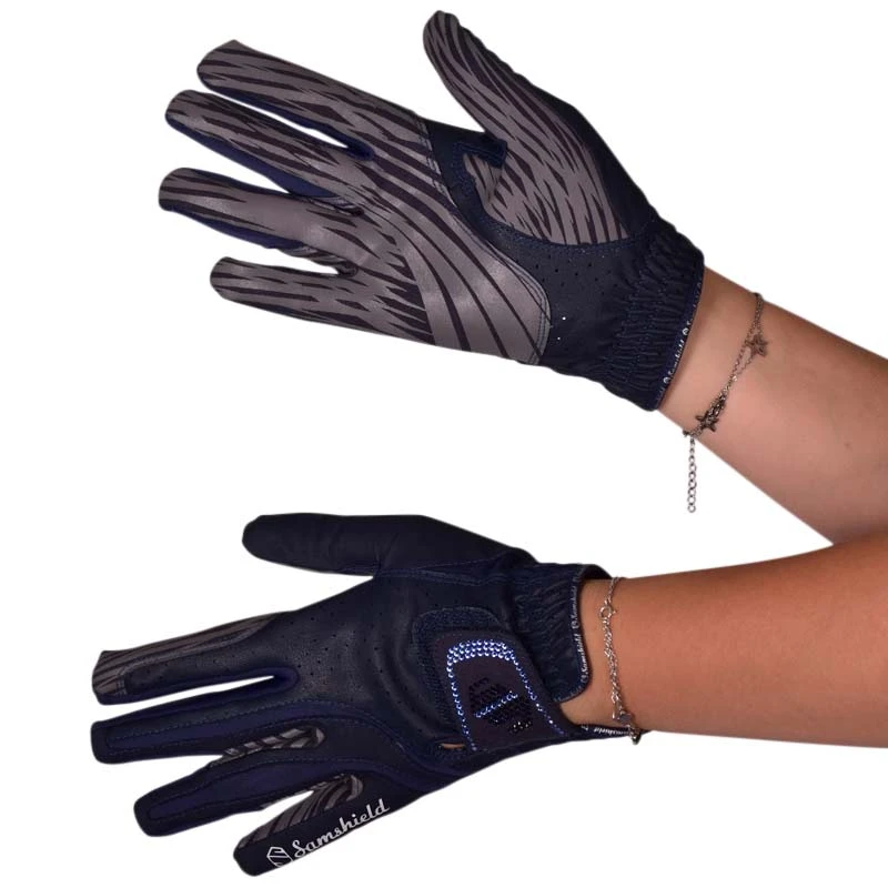 These ultra-thin Samshield V-Skin Swarovski gloves are probably one of the most innovative gloves on the market right now. All Samshield V-Skin gloves are completely made of perforated synthetic leather, this offers maximum comfort and airflow, whilst keeping them lightweight and machine washable (30° C). The inside of the gloves are made of strong suede decked out with real silicone, for a very strong and durable grip. The Lycra used in these liners of these gloves is extremely flexible and therefore offers great comfort and fitting. The spandex used around the wrist is doubled in size, to ensure a perfect fit in that area.