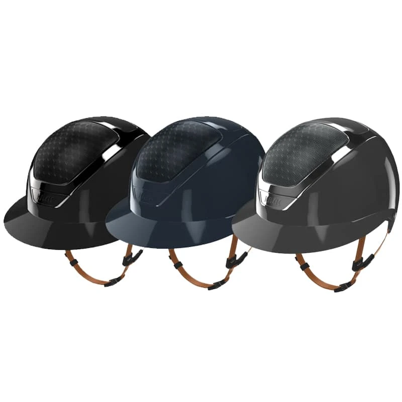 Designed and completely made in Italy, the Starlady model by Kask perfectly combines style, design, and functionality. Its elegant shape and unique technological details guarantee comfort, safety, and high performance to the rider. The molded outer shell, in ABS, is very resistant and light. It’s covered with a special textile material that is waterproof, scratch-resistant, and washable. Additionally, the soft eco-leather chinstrap is hypoallergenic, washable, and helps to avoid irritations of the skin. It adds a touch of style to this model, which will be much appreciated by the most demanding riders for its fit and design. The comfortable and breathable inner padding is made of 100% Merino Wool: a natural antibacterial fiber that provides unique levels of breathability and thermoregulation. The inner shell is made with expanded polystyrene and features three levels of densities in order to ensure total shock protection, comfort, and lightness. With two honeycomb-like aeration grids built in the polystyrene, a smart ventilation system in the helmet provides high volumes of cooling airflow, adding extra comfort to the rider. KASK is well aware that the helmet has to fit correctly to the rider’s head so that the best safety level is guaranteed. This is the reason why KASK helmets are provided with KASK’s patented self-adapting adjusting system in a carbon look. Introduced for the first time in the equestrian market, the FIT System allows the helmet to perfectly and automatically fit on the rider’s head by gently cradling the back of the head. The difference between the Kask Dogma model and the Kask Starlady model, is that the Dogma model has a standard (narrow) visor, and the Starlady model has a wide visor.