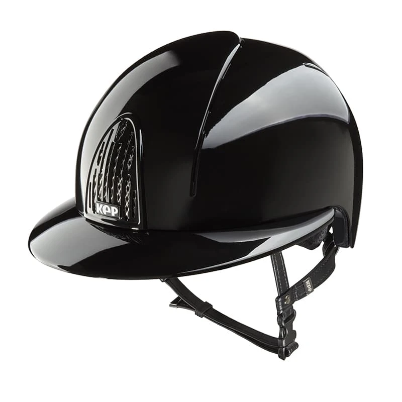 This stunning KEP Italia Smart Polish helmet will definitely turn heads! The gorgeous KEP helmet is made in the Smart model, but with the addition of a full polish finish. The shiny polish material ensures a unique and elegant overall look. The ECO leather chinstrap on this helmet will come in the color of the shell. This helmet is available in Blue polish and Black polish. This helmet is equipped with a wide visor, which will offer optimal protection from sun and rain.