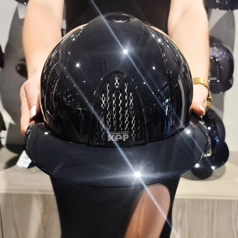This helmet has all the features that are typical for helmets made by KEP Italia: safety, first and foremost, lightness and comfort, as well as aesthetic value. The KEP helmets are perfect for all equestrian disciplines. These helmets are equipped with a flexible visor, a front grill with inner protective steel mesh, and a KEP air control system. This system ensures optimal ventilation, thus controlling the internal temperature and air circulation through special channels in the polystyrene.