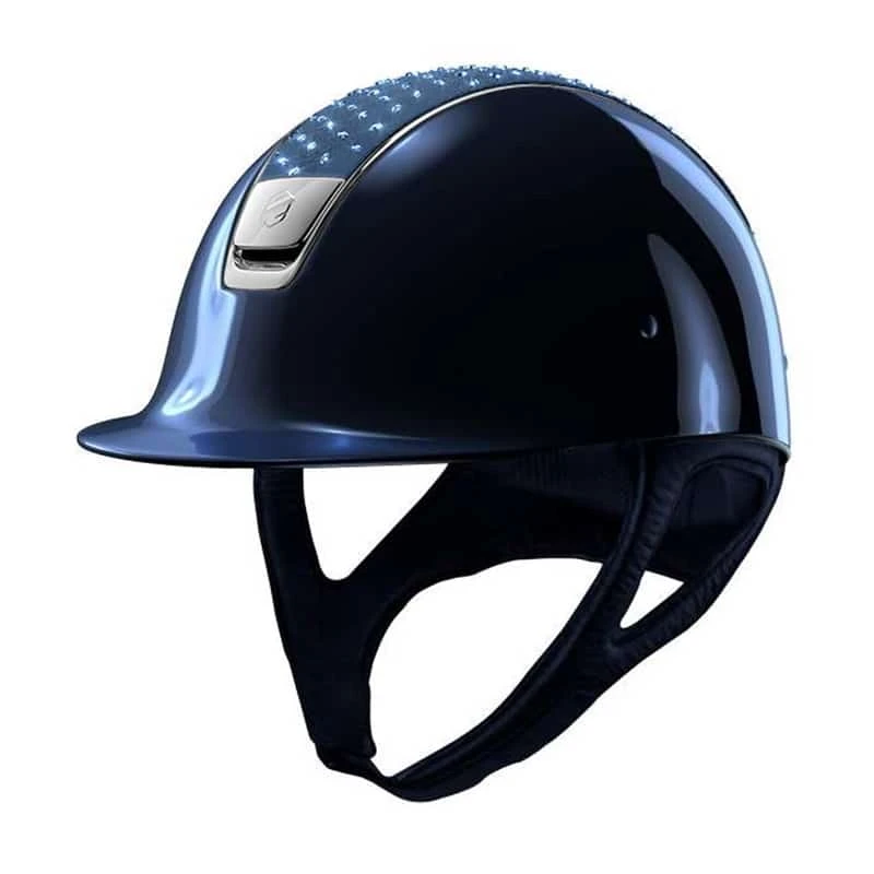 This Samshield Glossy helmet with crystal comet top is an absolute eye-catcher. The top this helmet is made of Alcantara suede and is embellished with a sparkling design of Swarovski crystals, in the same color of the helmet. The chrome silver blazon and trim give the helmet an elegant look.