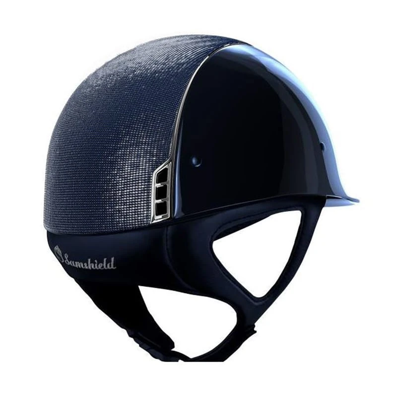 This Samshield Glossy helmet with Shimmer top has a beautiful modern design. The chrome silver blazon and trim give the helmet an elegant look, perfect as competition wear, or for everyday use.