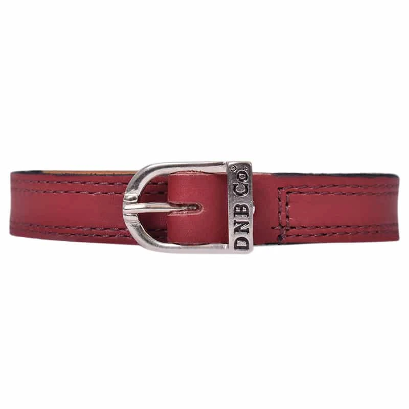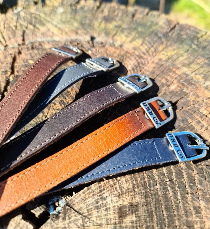 These spurstraps are made in standard WRAT leather. The spurstraps have a silvercoloured buckle wiht the letters DNB Co on it. De Niro spurstraps are available in several diffent types of leather and in several different colours.