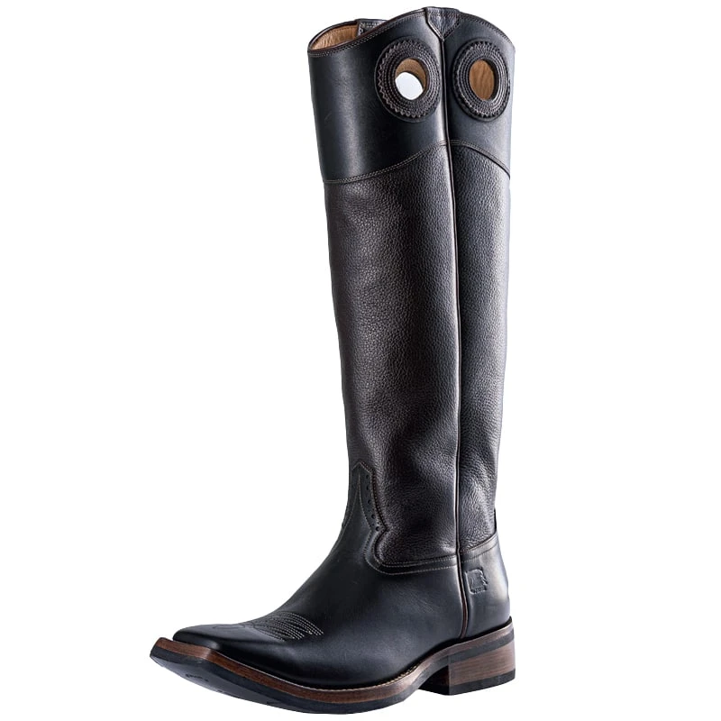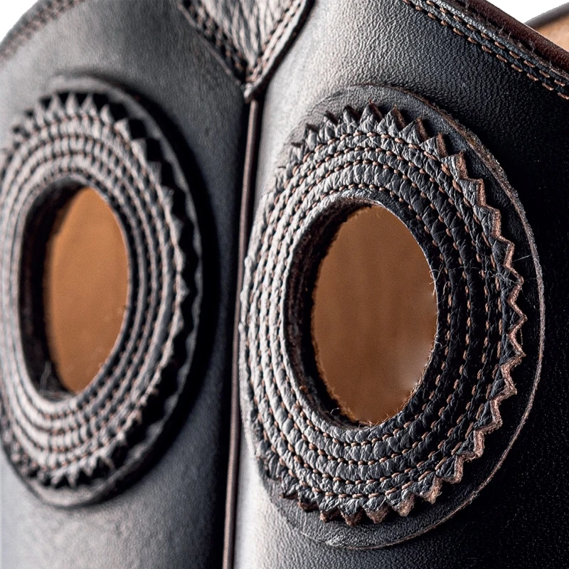 This outstanding Vermo Cowboy boot is a custom made Buckaroo boot. This model is the tallest model in our range and always features decorated pull holes and classic side welts. This particular boot has a wave top.